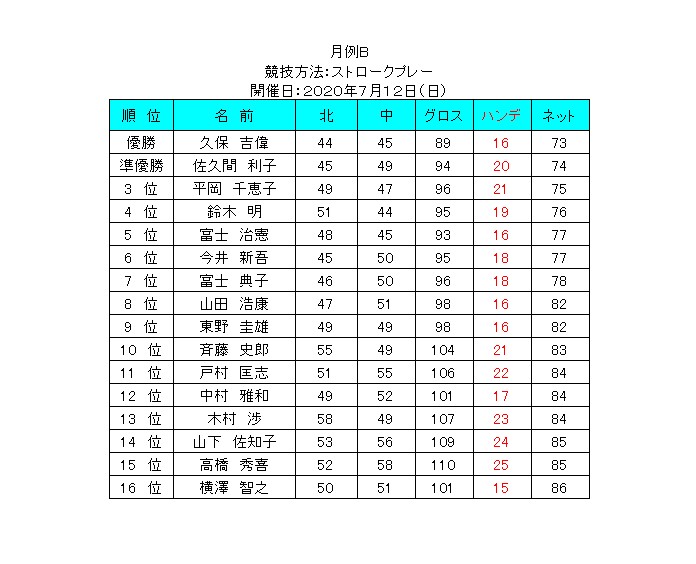 7月度月例Bクラスの競技結果を公開しました